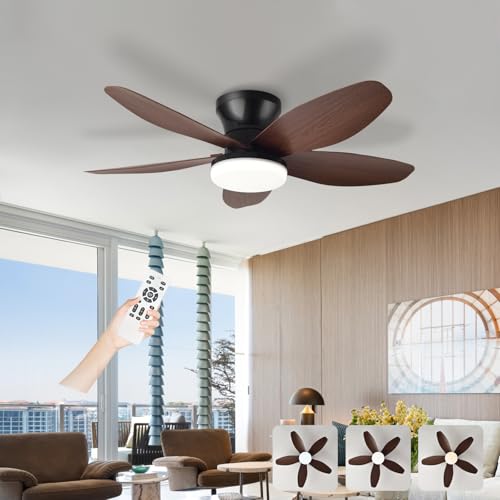 Ventilateur De Plafond Silencieux Avec Lumiere Et Telecommande, Lustre Avec Ventilateur 3 Pales, Dimmable, DC Motor 6 Vitesses, Ventilo Plafond LED Pour Salon, Bureau, Chambre-Black Woodgrain|65cm