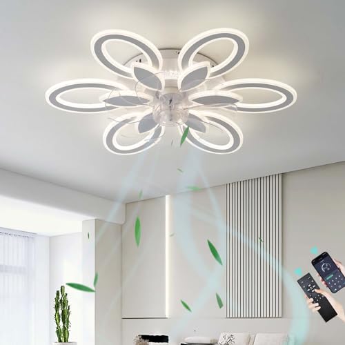 Fleur Luminaire Ventilateur Plafonnier 6 Vitesses Réversible Lustre Ventilo Avec Télécommande LED Dimmable Silencieux Plafonnier Ventilateur Pour Le Salon Chambre, Blanc