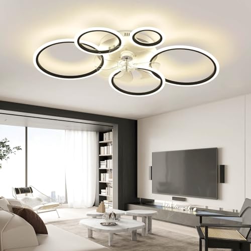 GWYAJTU Ventilateur De Plafond Silencieux Avec Lumiere Moderne Dimmable Lampe Ventilateur Plafond Réversible 6 Vitesses Lustre Ventilo Avec Télécommande APP Pour Chambres Coucher Et Salons, Noir