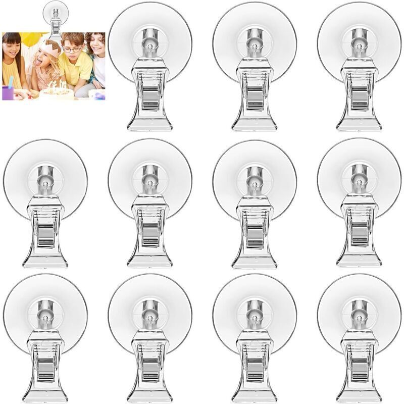 12 Pièces Ventouse Pince, Plastique Transparent Ventouse avec Clip Ventouses avec Crochets, Crochet À Ventouse Support À Crochet À Ventouse pour