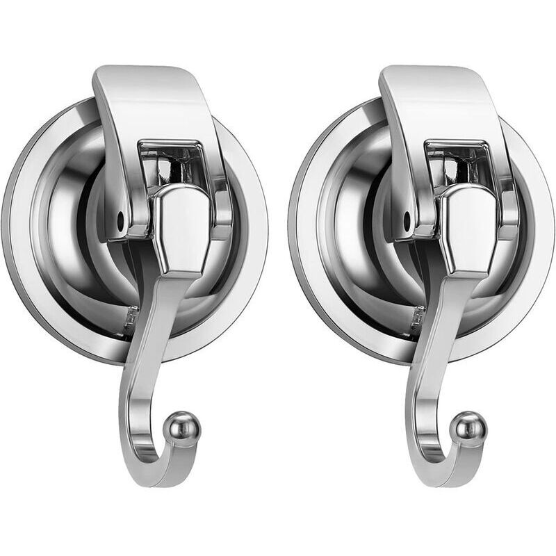 Crochet Ventouse RéUtilisable 2 Pièces Sans Percage Puissante Acier Inoxydable Pour Salle De Bain, Porte En Verre, Carreaux, Argent