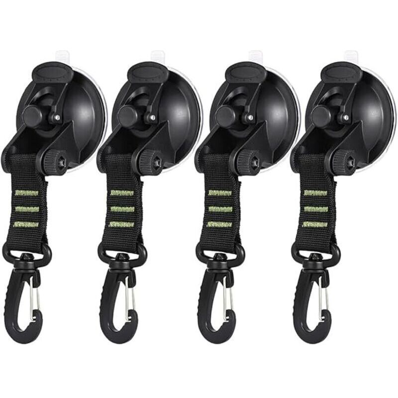 Lot de 4 Ancrage à Ventouse, Ventouse de Camping Forte Ventouse Voiture Ventouse avec Crochet pour Tentes Auvents Bâche de Camping Accessoire