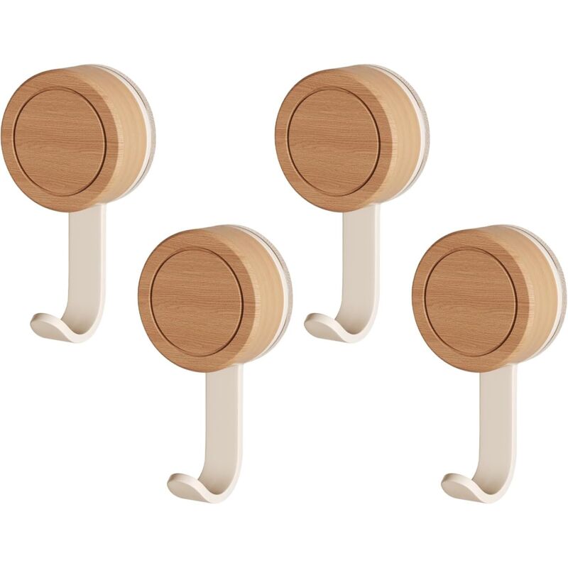 Lntyq Crochet Ventouse Salle de Bain, 4 Crochet Adhesif Mural en Bois, Douche Accroche 3KG, Réutilisables Crochets Adhesifs Muraux, Crochet Plafond