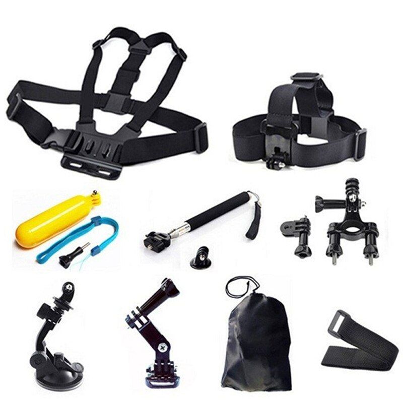 9 en 1 accessoires Kit poitrine + sangle de tête + poignée flottante + guidon tige de selle + monopode + ventouse pour GoPro SJCAM Action Sport caméras