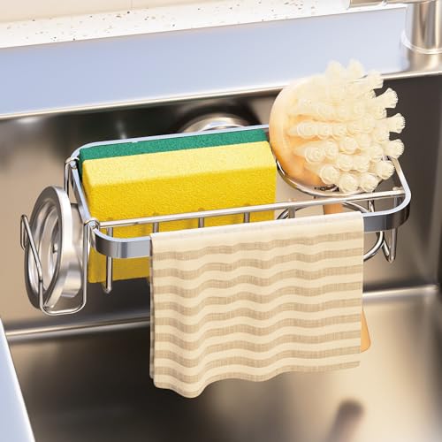 TAILI 4 en 1 Porte-éponge d'évier argenté avec Ventouse antirouille Porte-éponge d'évier de Cuisine réutilisable pour l'intérieur de l' Stocker, la Brosse, Le Chiffon