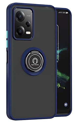 RankOne Coque pour POCO X5 5G / Redmi Note 12 5G (6.67" inches), Anneau Support Base Ventouse Magnétique Etui pour Téléphone Portable Mat Transparent - Bleu Royal