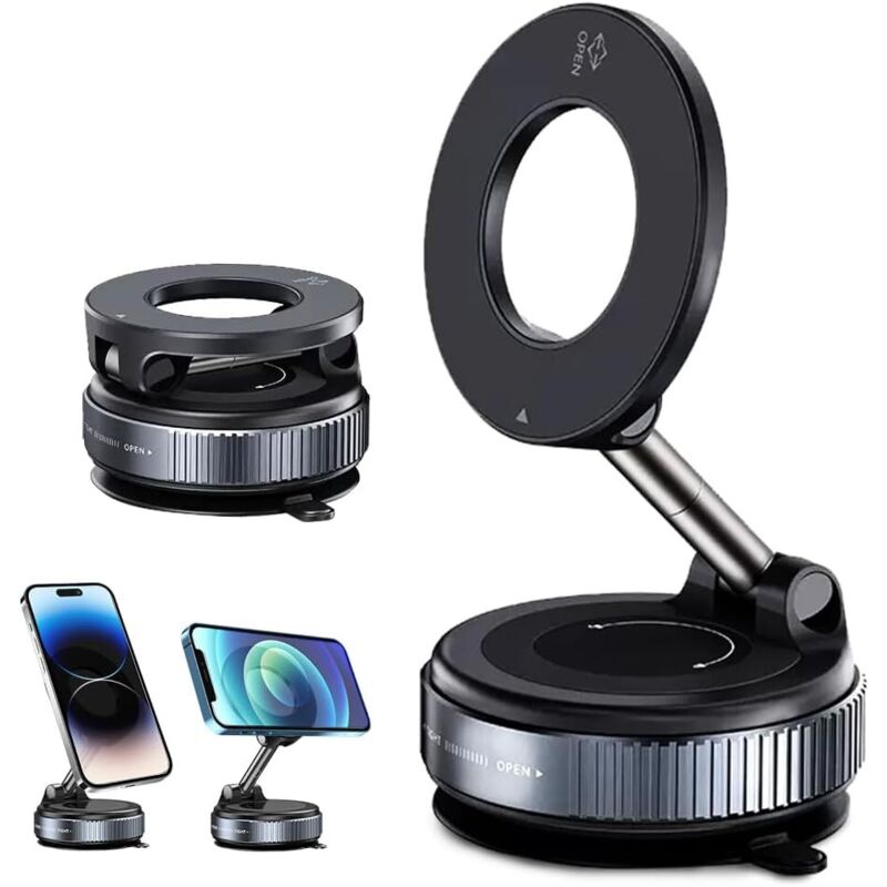 NEWZEROL Ventouse Magnétiques Telephone pour Tous Les Modèles de Téléphone, Support d'Accessoires de Téléphone Portable Mains Libres Antidérapant pour Magsafe iPhone 15/14/13/12,Pixel 10 Série -Noir