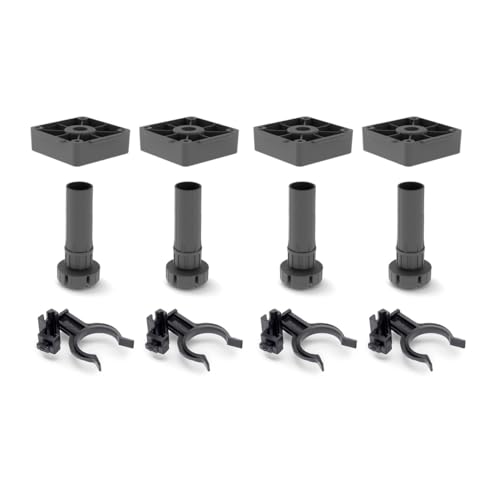 Emuca - Kit de Pieds de Vérins avec Base carrée pour Meubles, Hauteur 150mm, réglable 148-190mm, Plastique, Noir