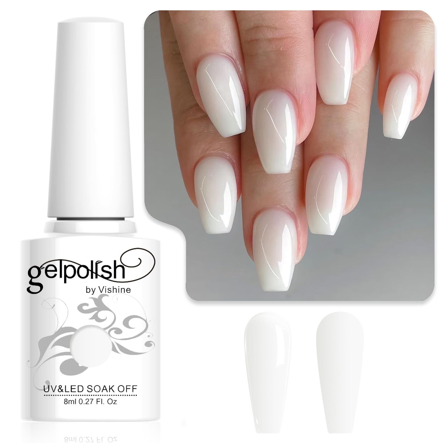 Vernis Gel Semi Permanent Milky White, Vernis à Ongles Semi-Permanent Naturel...