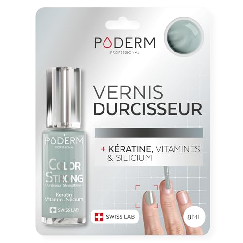 PODERM Vernis Durcisseur Ongles – Biotine, Silicium, Kératine | Répare & Fortifie les Ongles Abîmés, Fragilisés, Cassants par Vernis Semi-permanent & Vieillissement | Swiss Made - Soft Sage