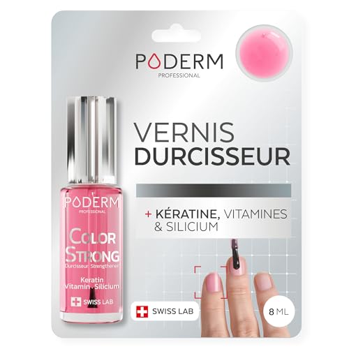 PODERM Vernis Durcisseur Ongles – Biotine, Silicium, Kératine | Répare & Fortifie les Ongles Abîmés, Fragilisés, Cassants par Vernis Semi-permanent & Vieillissement | Swiss Made - Rouge Rose