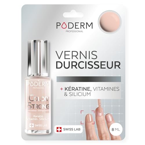 PODERM Vernis Durcisseur Ongles – Biotine, Silicium, Kératine | Répare & Fortifie les Ongles Abîmés, Fragilisés, Cassants par Vernis Semi-permanent & Vieillissement | Swiss Made - Nude Cachemire