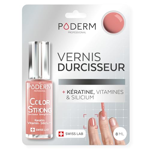 PODERM Vernis Durcisseur Ongles – Biotine, Silicium, Kératine | Répare & Fortifie les Ongles Abîmés, Fragilisés, Cassants par Vernis Semi-permanent & Vieillissement | Swiss Made - Rose Poudré