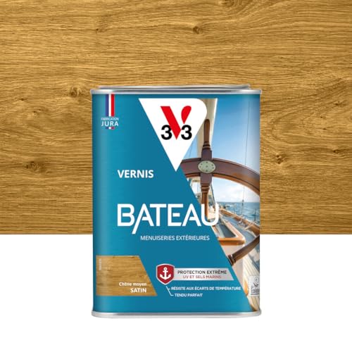 V33 Vernis bois extérieur Chêne moyen satin - Vernis bateau - Protection extrême UV et sels marins - Résistance aux écarts de températures - Ecolabel - 0,5L