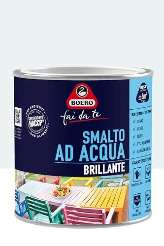 Boero DIY Vernis à ongles brillant à l'eau pour intérieur/extérieur sans odeur prêt à l'emploi pour le fer, le bois, le PVC, le mur, le format de 0,5 L, couleur blanche glacée