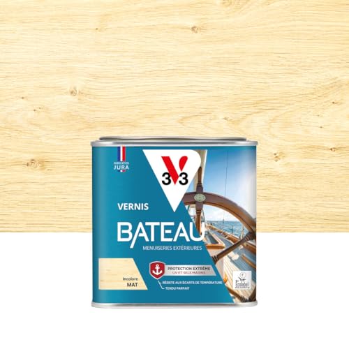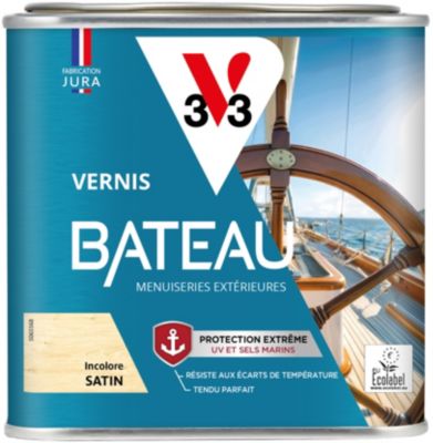 V33 Vernis bois extérieur Incolore satin - Vernis bateau - Protection extrême UV et sels marins - Résistance aux écarts de températures - Ecolabel - 0,5L