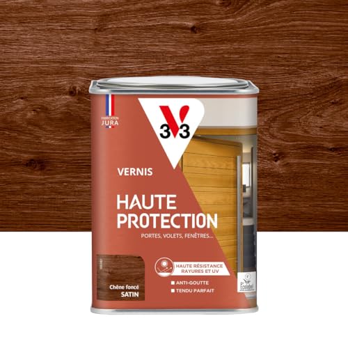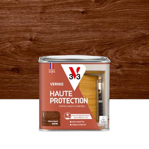 V33 Vernis bois extérieur Chêne foncé satin - Haute Protection - Haute résistance rayures et UV - Anti-goutte et tendu bon - Ecolabel - 0,5L