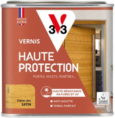 V33 Vernis bois extérieur Chêne clair satin - Haute Protection - Haute résistance rayures et UV - Anti-goutte et tendu bon - Ecolabel - 0,5L