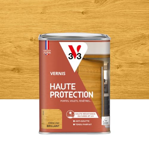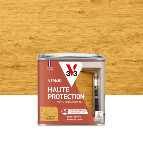 V33 Vernis bois extérieur Chêne clair brillant - Haute Protection - Haute résistance rayures et UV - Anti-goutte et tendu bon - Ecolabel - 0,5L