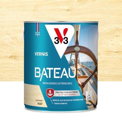 V33 Vernis bois extérieur Incolore mat - Vernis bateau - Protection extrême UV et sels marins - Résistance aux écarts de températures - Ecolabel - 2,5L