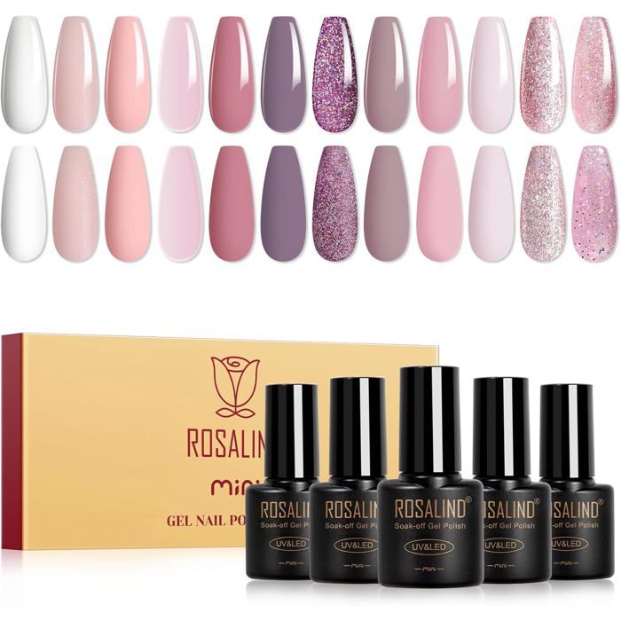 Vernis Semi Permanent, Rose Pailleté 6 Couleurs Vernis Gel UV Semi Permanent ...