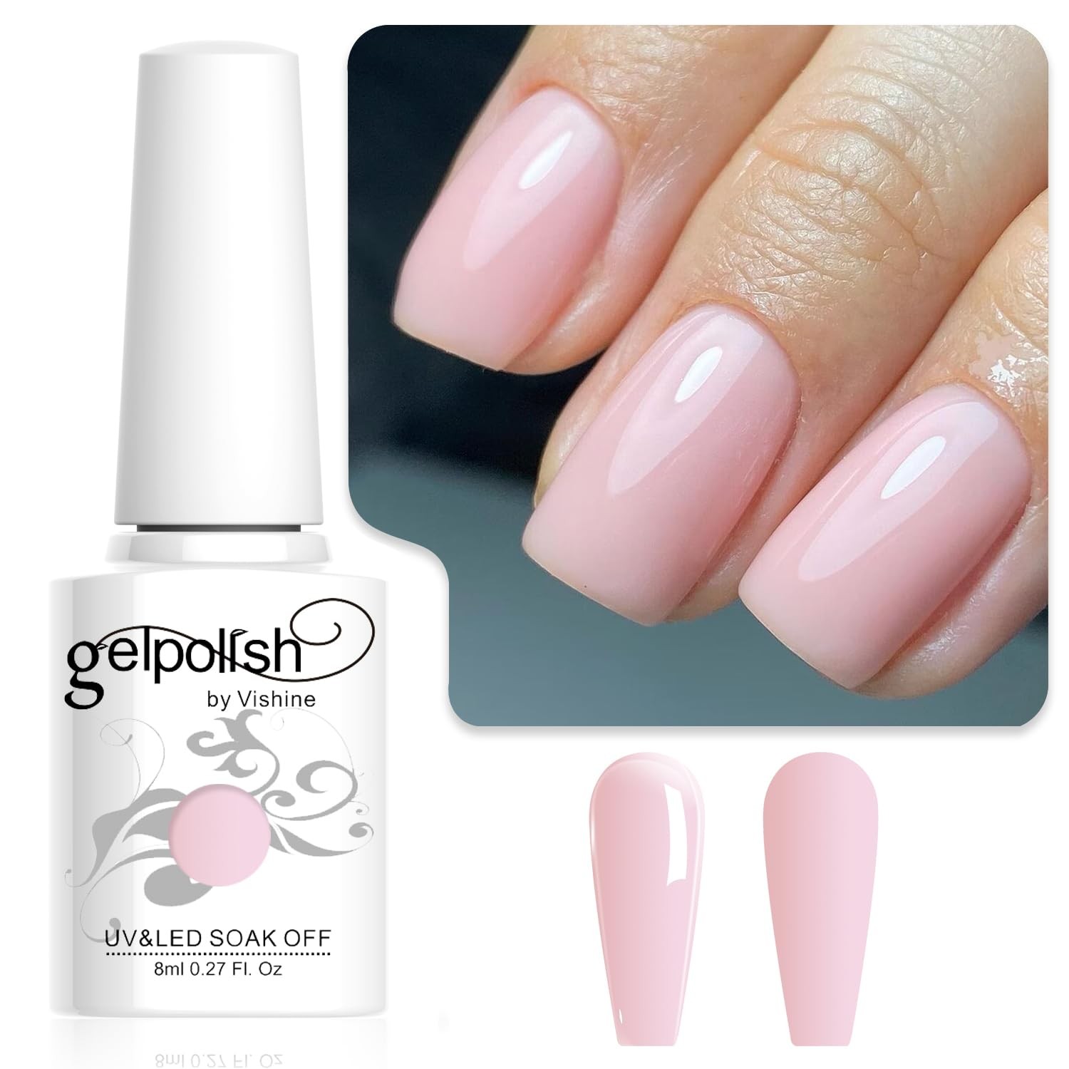 8ml Vernis Gel Semi-Permanent Transparent Milky Pink Rose Clair Vernis à ongl...