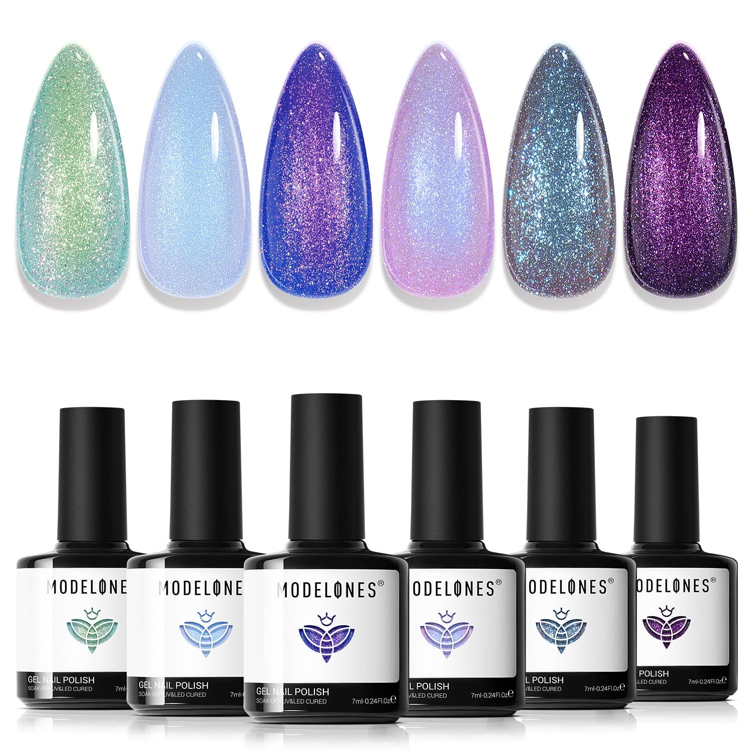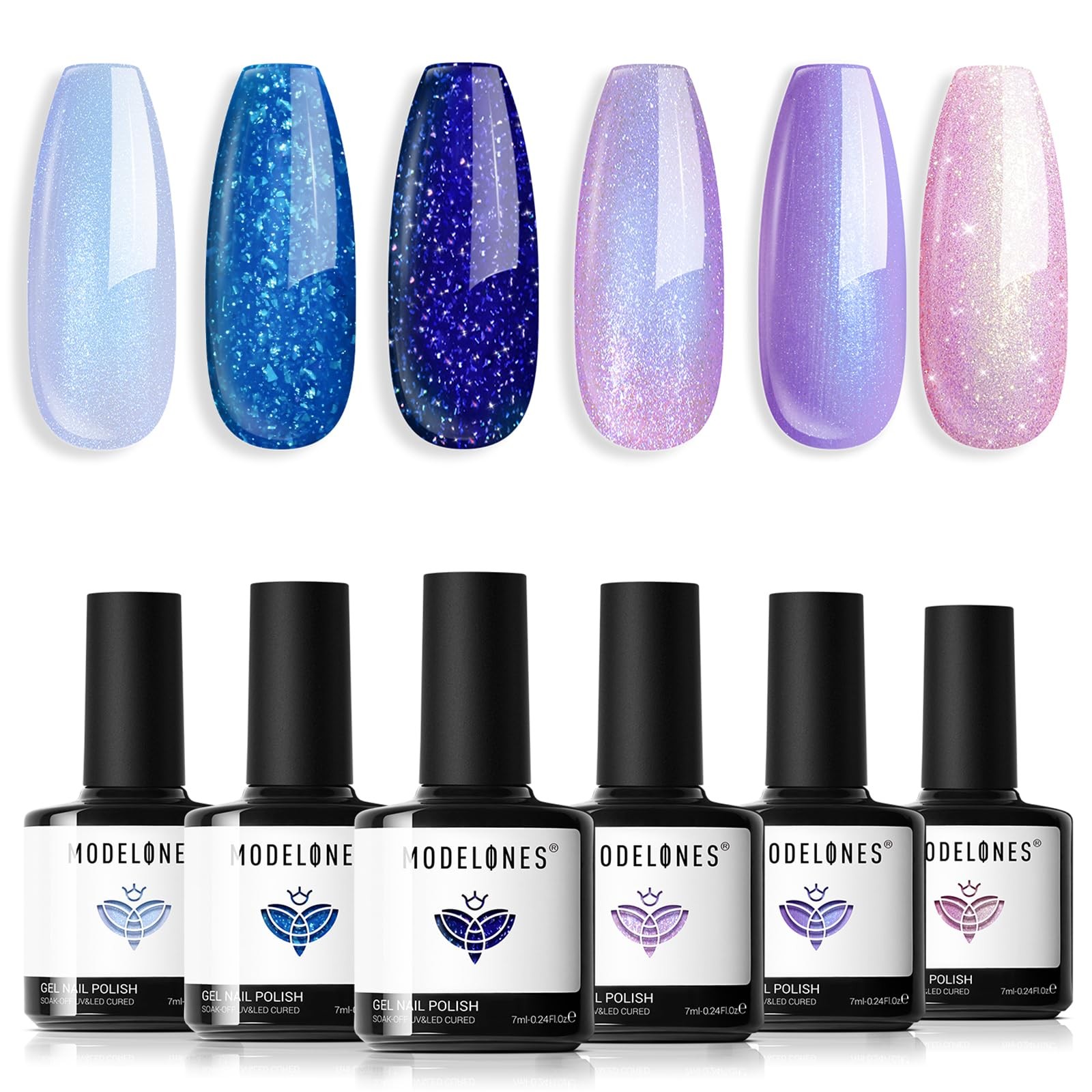 Vernis Semi Permanent,Vernis Gel UV Semi Permanent Série Bleu Violet Rose 6 C...