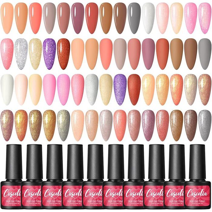 Vernis à Ongles Gel Semi Permanent Pailleté Marron nude Glitter Vernis à Ongl...