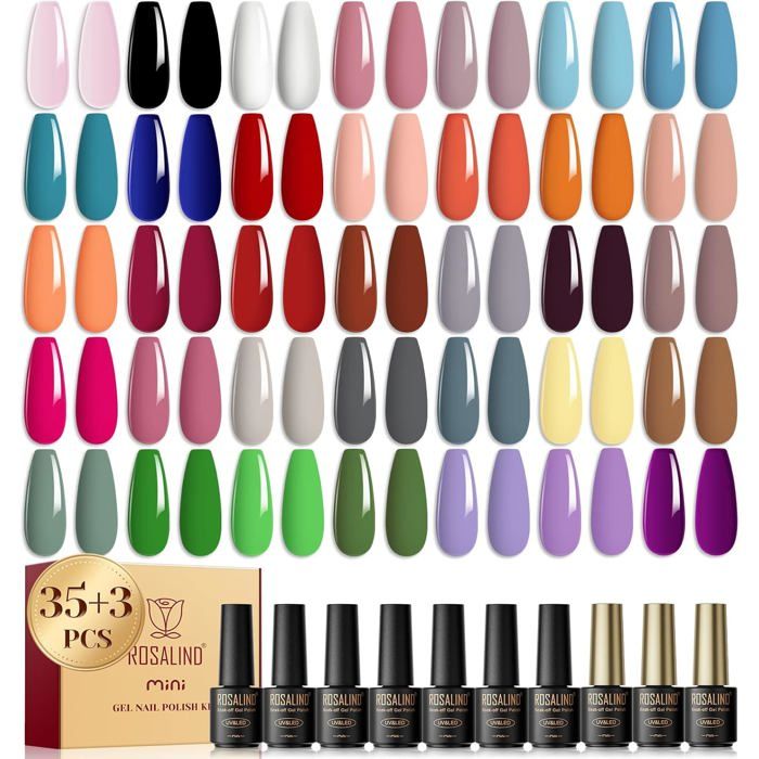 Vernis Semi Permanent 38 Pcs 35 Couleurs + 1 Base +1 Top Coat Brillant +1 Top Coat MatteLot Vernis Gel Semi Permanent Rose[V313]