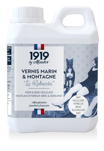1919 BY MAULER - Vernis Marin « Le Robuste » - Brillant Incolore - Bois Extérieur ou Intérieur - Résistance extrême intempéries & UV - 1 L