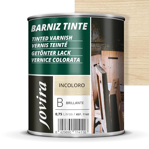 JOVIRA PINTURAS Vernis teinté et brillant pour l’intérieur (6 couleurs), vernis pour bois, protège, décore et embellit (750 Millilitres, Incolore)