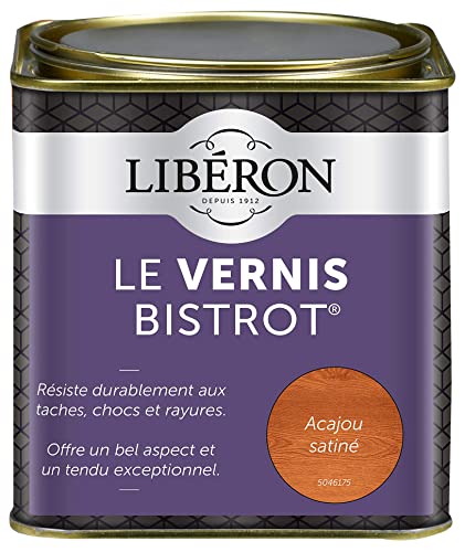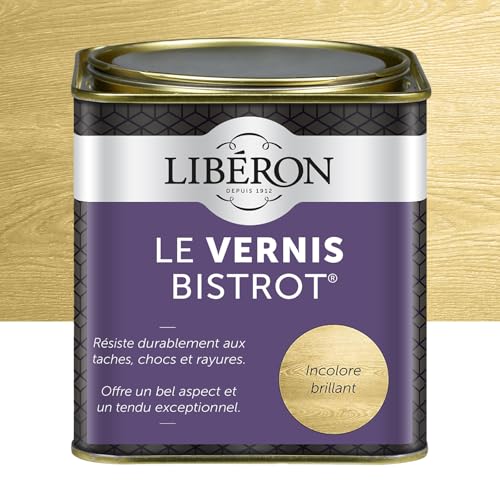 Libéron - Vernis bistrot - Vernis bois - Meubles Boiseries Objets - Très haute qualité - Anti-taches - Anti-chocs et rayures - Tendu bon - Incolore Brillant - 0,5L