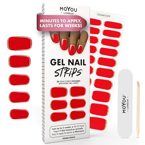 MOYOU LONDON Autocollants auto-adhésifs pour ongles en Gel Semi-durci, lampe UV/LED requise, 20 enveloppes de vernis à ongles en Gel, autocollants pour Nail Art - Femme Fatale