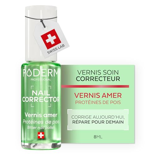 PODERM Vernis à Ongles Soin Correcteur pour Ongles Rongés - Amer | Crée une Barrière Protectrice & Fini Brillant - 8 ML | Goût Longue Durée aux Protéines de Pois | Développé par un Podologue en Suisse