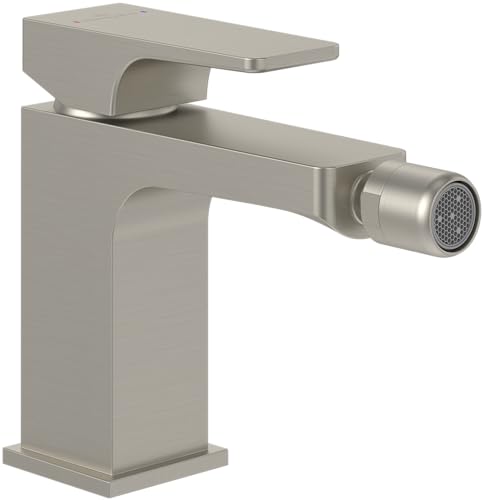 Villeroy & Boch Architectura Square Robinet de bidet à levier unique avec tirette et cartouche en céramique, mitigeur de bidet économe en eau, hauteur du bec 100 mm, carré, nickel brossé mat