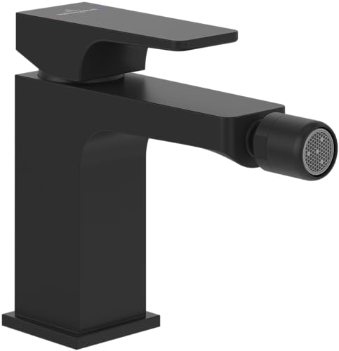 Villeroy & Boch Architectura Square Robinet de bidet à levier unique avec tirette et cartouche en céramique, mitigeur de bidet économe en eau, hauteur du bec 100 mm, carré, noir mat