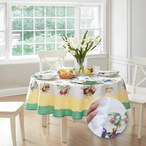Elrene Home Fashions Villeroy & Boch Nappe Ronde résistante aux Taches et à l'eau Motif Jardin français 178 x 177,8 cm