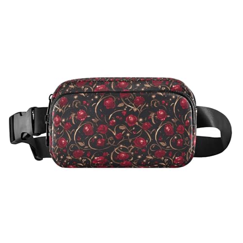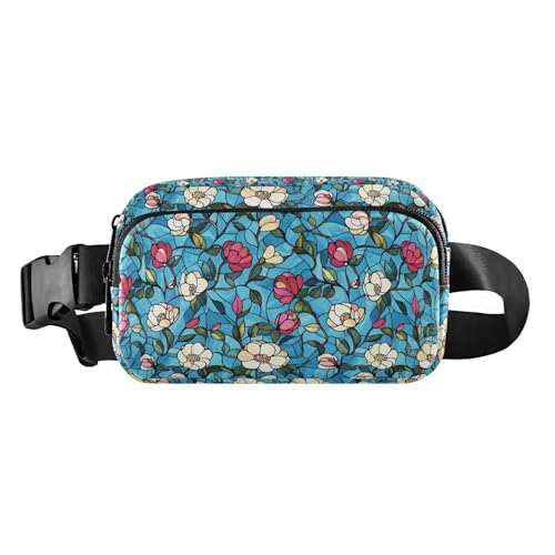 Sac banane tendance en verre teinté pour homme et femme - Grande capacité - Avec sangle réglable - Pour voyage, shopping, course à pied, vitrail fleur fleur rose, 1 size
