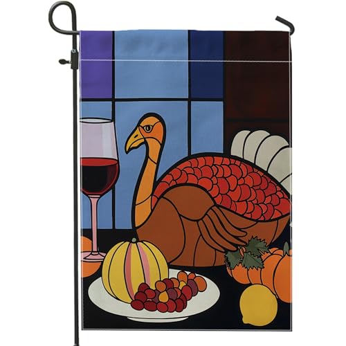 Drapeau de jardin en verre à vin de la Turquie de Thanksgiving, saison d'automne, décoration d'intérieur, style vitrail, décoration de fête extérieure, cour, 30,5 x 45,7 cm