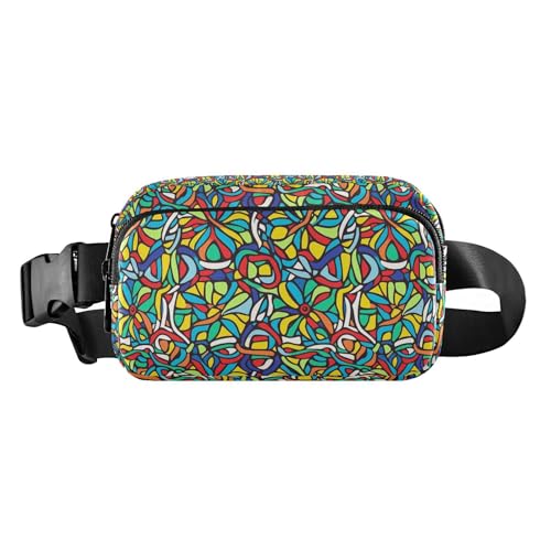 Sac banane coloré en verre teinté mandala pour homme et femme résistant à l'eau avec sangle réglable pour voyage, gym, travail, vitrail mandala coloré, 1 size