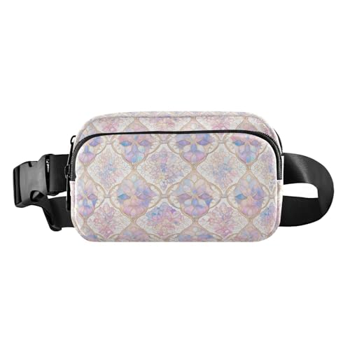 Sac banane mignon en verre teinté blanc et pêche pour homme et femme, sac à bandoulière multifonction avec sangle réglable pour l'entraînement, la course à pied, la randonnée, Vitrail blanc et pêche,