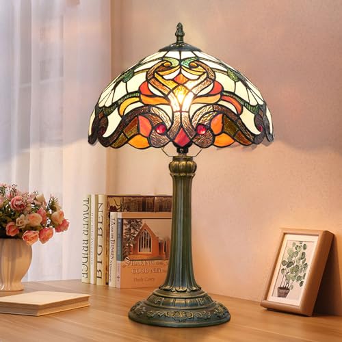 AIBOTY Lampe De Table De Nuit en Vitrail Tiffany Baroque, Abat-Jour en Verre Fabriqués À La Main, Métal De Lecture Table De Chevet Bureau Lumière pour Chambre À Coucher Salon D'étude,Victoria