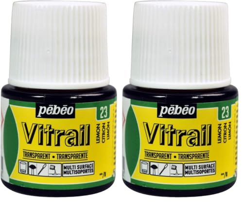 PEBEO - Peinture Vitrail Transparent 45ml Couleur Citron – Peinture sur Verre Jaune Vif à Base de Solvant, Finition Brillante (Lot de 2)