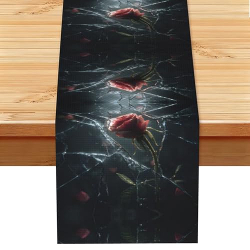 EZDLOWVBA Chemin de table en verre cassé craquelé imprimé rose 33 x 183 cm nappe de table de cuisine salle à manger décoration pour la maison, fête, restaurant