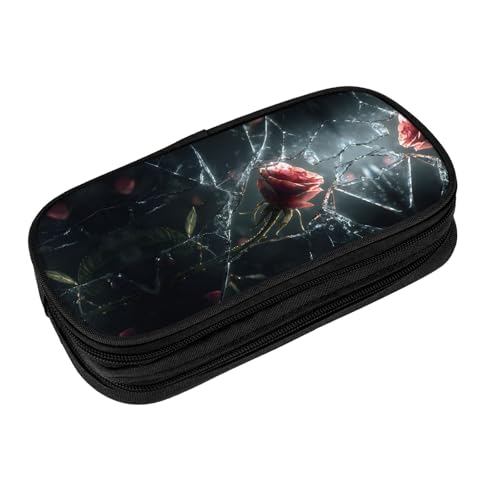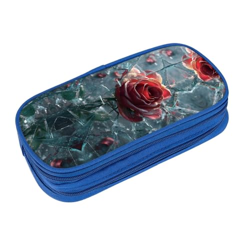 EZDLOWVBA Trousse à crayons en verre cassé craquelé avec imprimé rose craquelée pour garçons et filles – Jolie trousse à crayons avec fermeture éclair pour étudiants – Trousse à crayons pour fille et