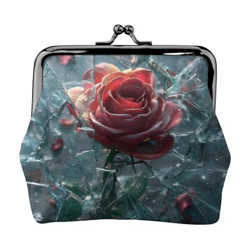 Porte-monnaie en verre cassé craquelé imprimé rose avec serrure à baiser, compact et durable, facile à transporter, Noir , Taille unique, Pochette à monnaie