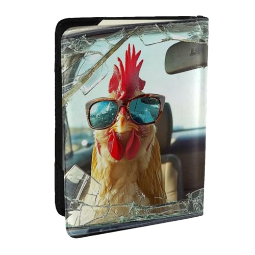 Porte-passeport imprimé poulet et verre cassé, étui de voyage en cuir PU pour homme et femme, 16,5 cm, Noir , Taille unique
