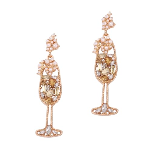 Boucles d'oreilles en verre de vin rouge pour femmes, Boucles d'oreilles mignonnes en perles de vin, Boucles d'oreilles pendantes en verre de vin de champagne perlé hypoallergénique
