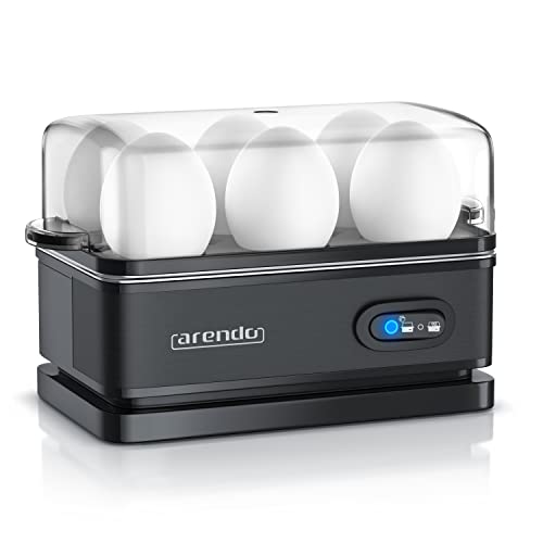 arendo – Cuiseur à œufs avec Fonction Maintien au Chaud - 1 à 6 œufs - Dur, Mollet ou à la Coque - Indicateur Lumineux - Verre doseur avec Perce-œufs - 400 W - Base Anti-dérapante – Noir