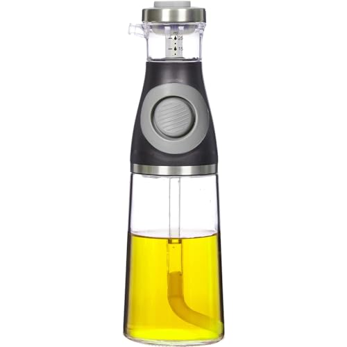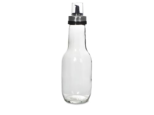 DRW Huilier en verre avec doseur et anti-goutte de 500 ml en acier inoxydable, verre et silicone 9 x 9 x 31 cm